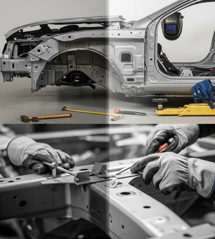 Modern vehicles feature unibody construction, where the body and frame are integrated for superior collision repair performance. When a crash occurs, damage to the exterior often means frame straightening and structural repair are required. However, thanks to today's sectional unibody designs, only the damaged segments need replacement—keeping repair costs low and reducing overall downtime.